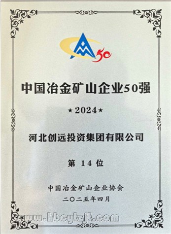 近日,中國冶金礦山企業(yè)協(xié)會發(fā)布“2024年中國冶金礦山企業(yè)50強”榜單,河北創(chuàng)遠投資集團有限公司憑借卓越綜合實力位列第14名,展現(xiàn)出強勁的發(fā)展勢頭。