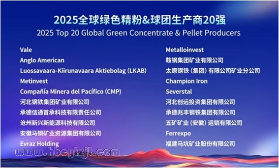 河北創遠集團榮登“2025全球綠色精粉&球團生產商20強”榜單